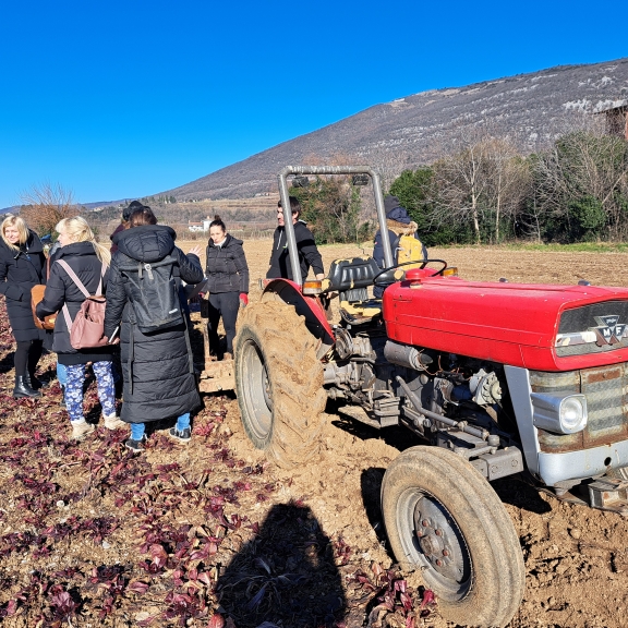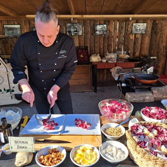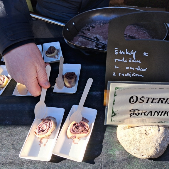 Dogodek so gostinci zasnovali izključno za novinarje, s ciljem, da njegovo ime seže v daljno slovensko vas. In kar je bilo najlepše, je prav slikovito predstavljena zgodba, za katero je med drugim poskrbela tudi Nika Šuligoj. Začeli smo na Trgu Evrope, kjer je predstavila povezavo med solkanskih radičem in novogoriško železniško postajo, s pomočjo katere je ime radiča segla tudi onkraj goriških polj. Pot se je nadaljevala na solkansko polje, kjer sta nam Teja in Boštjan Koršič razložila celoten potek pridelave te avtohtone rože. Sledil je obisk podjetja Biolab na italijanski strani, kjer nam je lastnik, Massimo Santinelli, zaupal vse izdelke, ki jih ustvarjajo iz radiča, po italijansko znan kot La rosa di Gorizia.