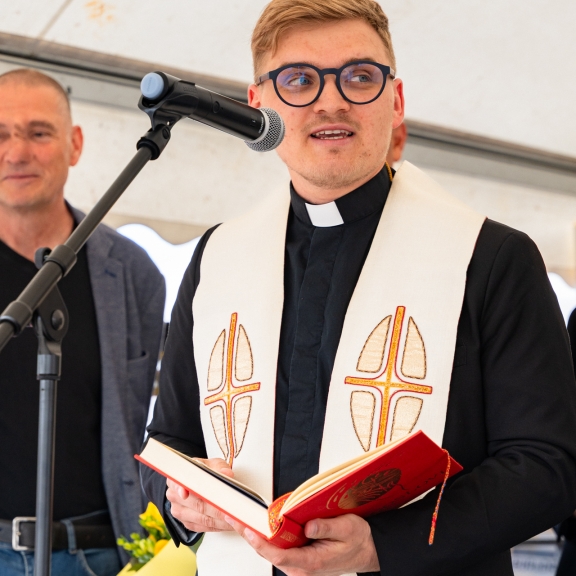 Podjetniško vino je s prisrčnim blagoslovom pospremil mladi duhovnik Mel Kovic, sam iz podjetniške družine, člana naše zbornice.