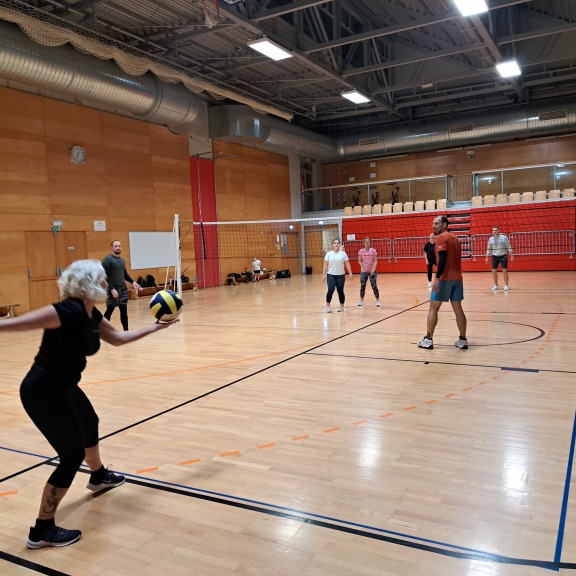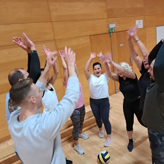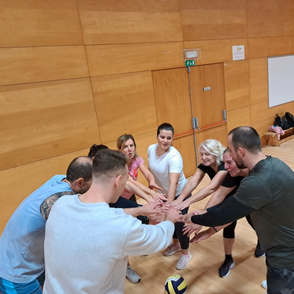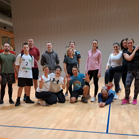 Zgodbo zaenkrat pišemo v slogu odbojke in vadbe, tako poskrbimo za dinamiko, razgibanost in obenem druženje.